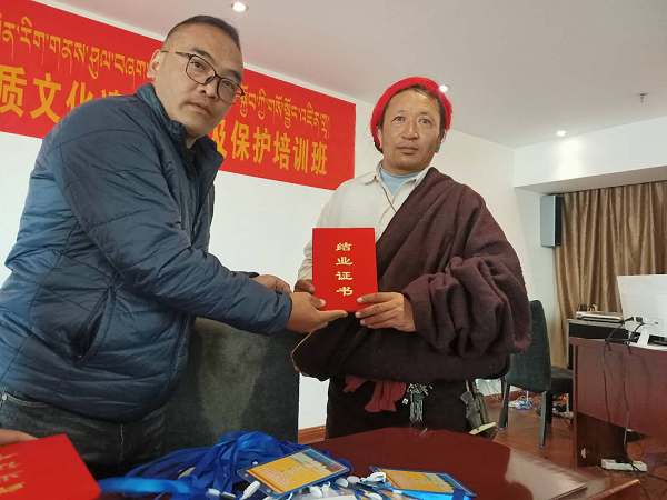 现场交流学习,树立非遗自信。除了理论学习,还组织学员到西藏擦擦展览馆和策门林堆绣唐卡传习基地参观学习,邀请两处传习点的负责人进行现场教学互动,分享展览运营模式、展陈设计和传习带徒等从业经验,共同学习,研讨基层非遗的传承经验。此外,培训结业当天,当雄县文旅局为学员颁发结业证书的同时,进行谈心谈话,征求了传承人对日常工作中的意见建议,并对今后当雄县的非遗保护工作重点提出了要求,强调继续完善非遗项目名录体系和传承人的考核管理体制。讨论会上,各传承人畅所欲言,纷纷对县文旅局非遗工作的新做派表示感谢的同时,励志为当雄非遗的发展和传承挥洒一名传承人的责任和担当,以非遗自信,为美丽当雄注入非遗魅力,让非遗遇见更美好的生活。