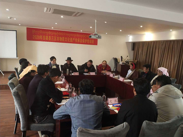 开展理论培训,激活非遗活力。为切实提高当雄县各级各类非遗代表性传承人意识和思想水平,提高非遗工作人员业务综合素质,当雄县文旅局充分利用拉萨便利的住宿条件和教学资源,积极协调相关单位,把参训学员集中到拉萨,于5月11日,在拉萨菲拉斯酒店,开办了为期三天的“2020当雄县三区非物质文化遗产传承及保护培训班”,新认定的传承人等共计18人参加。此次培训,邀请了拉萨市文化局非遗中心专技员罗桑进行理论授课,主讲了《非遗保护和实践》,提高传承人和业务人员的非遗理论水平,深受学员的喜爱。