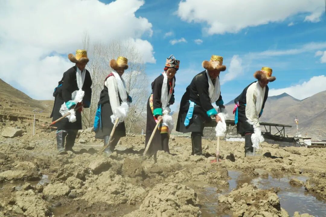 观测活动结束后,拉东村村民来到田间,举行春灌仪式。随着一声号令,渠水奔涌而出,顺着修整好的水渠流入农田。大家疏通水道、引水灌溉、平整土地,潺潺流水滋润着沉睡一个冬天的土地。