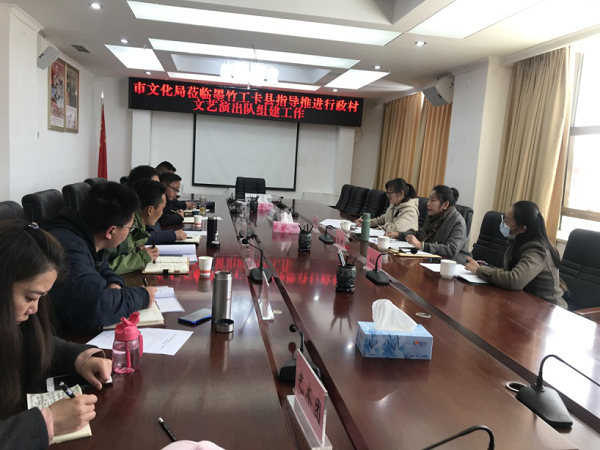 经局领导班子研究同意,3月27日至4月3日,市文化局联合群艺馆、县(区)文旅局、县(区)艺术团组成6个调研组分赴285个村(社区),面对面了解每一个村(社区)组建进展和存在的困难,调研完成后于4月7日,在局会议室听取了各组组长汇报,并将调研情况汇报市委常委、常务副市长占堆及市委常委、宣传部部长吴亚松,经请示两位常委同意,正式成立市文化局指导推进组,赴实地扎实指导推进组建和运行工作。